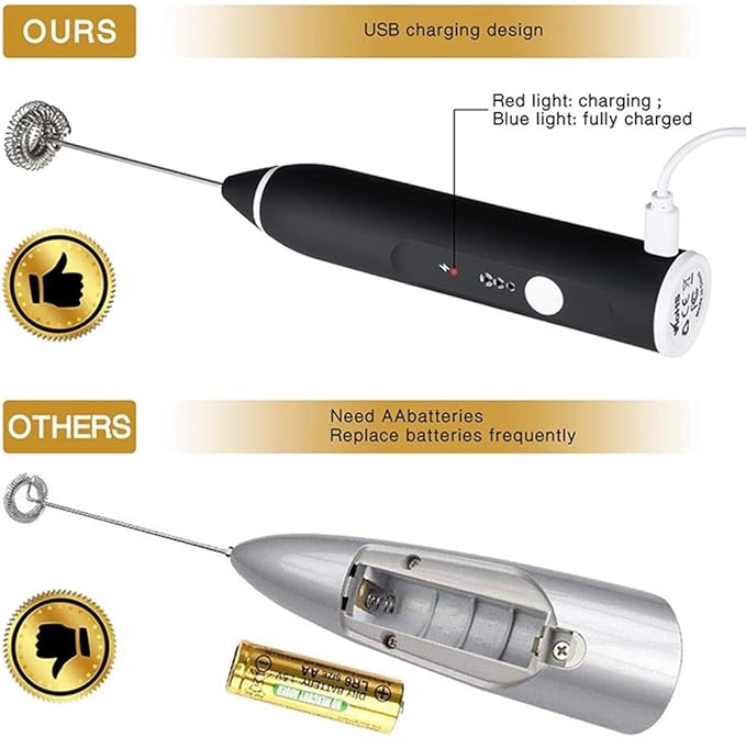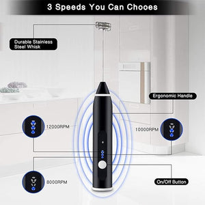 Rechargeable Handheld Milk Whisk with 3 Speed Adjustable Latte Coffee Cappuccino with Extra Egg Mixer