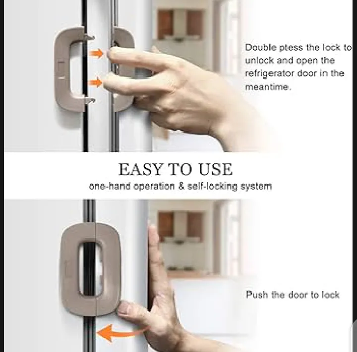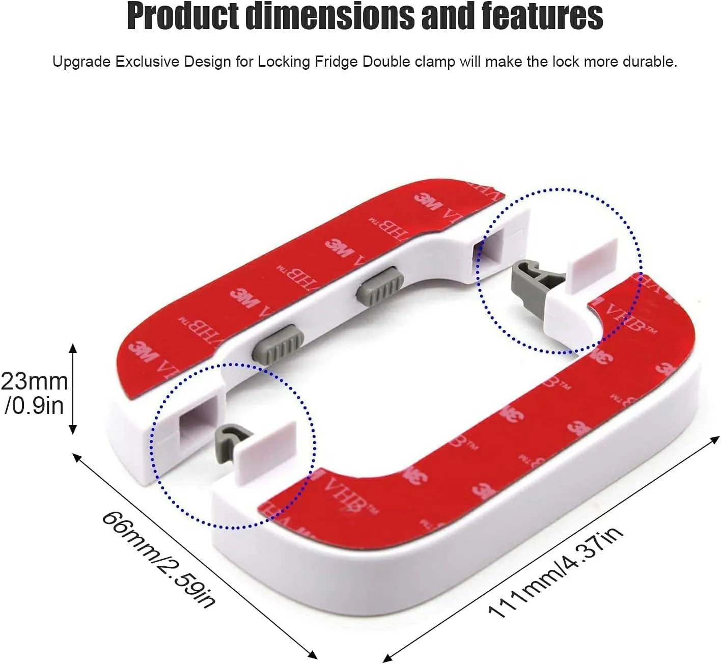Double Press Fridge Lock - Adhesive Refrigerator Lock With Dual Button - Child Safety Lock For Fridge - Durable ABS Plastic For Fridge & Cabinets - Grey & White Colors