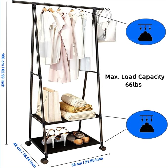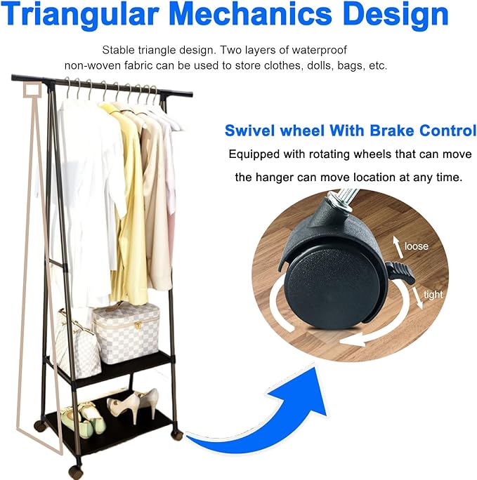 - [Sturdy and Durable]: Our wheeled garment rack is made of high-quality thickened tube, ABS and PP plastic, which is light-weight, strong, more durable and has large storage capacity.