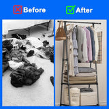 - [Fashion & Elegant & Concise]: The perfect clothing rack that can organize your daily or seasonal clothing. A double-layered undercarriage keeps your shoes and boxes in order. To store your shirts, clothes, pants, shoes, boots, and accessories, so that life is in order.